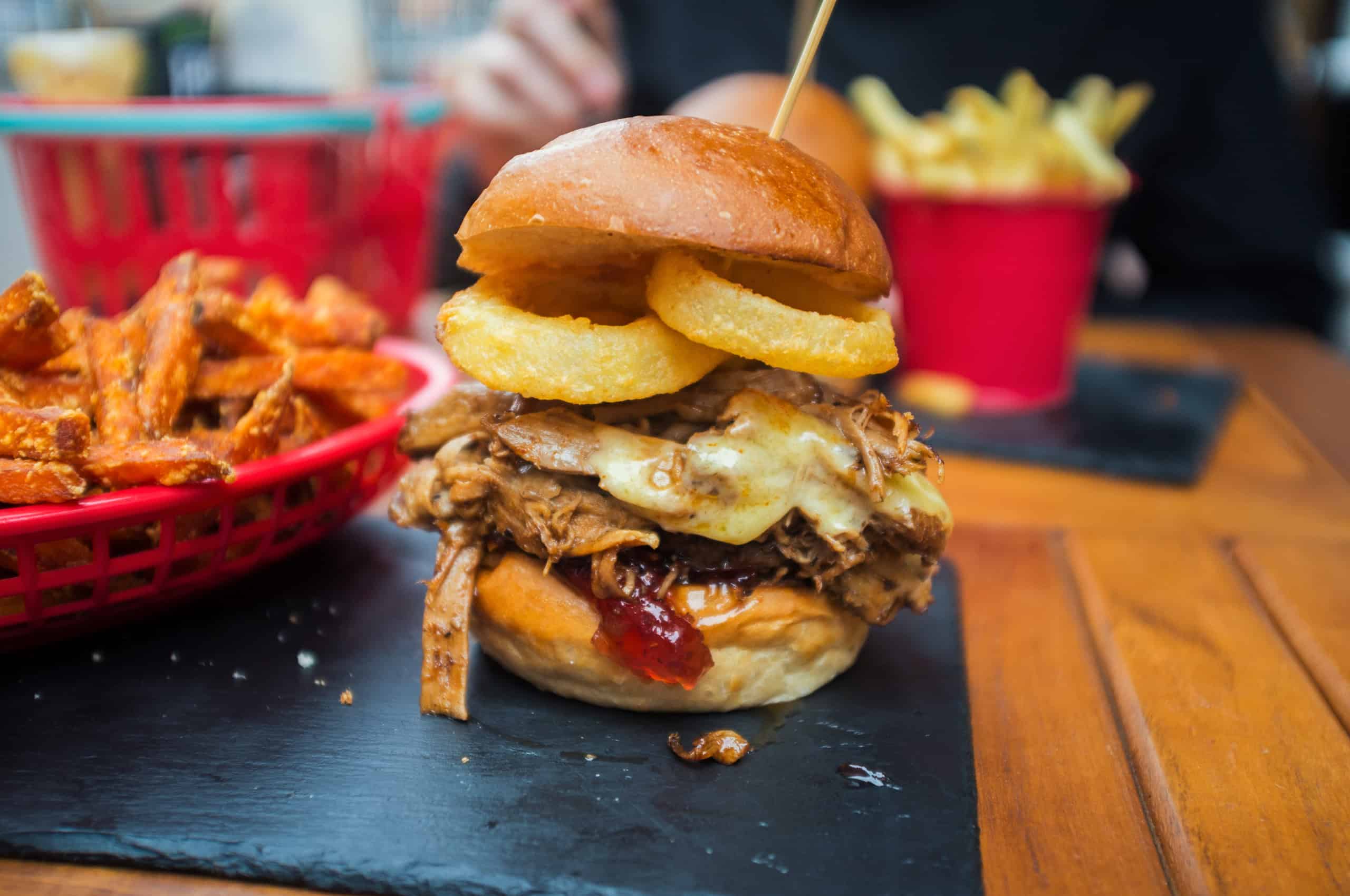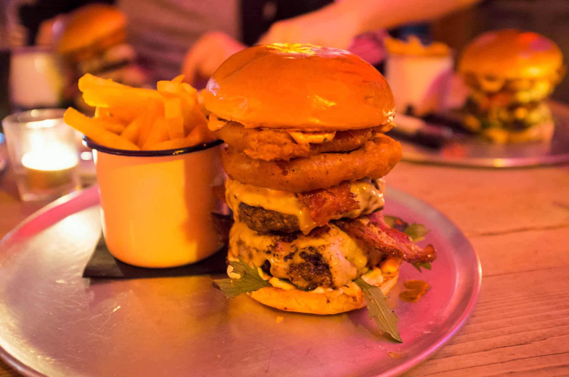 We pay Brighton Burger a visit to see what gourmet gold they have to offer. After looking through the menu there was no doubt in our minds that the Smokestack was the best choice for us. Wagyu beef topped with smoked pork, smoked cheddar & onion rings, sat on raspberry jam, onions and chilli peanut spread.