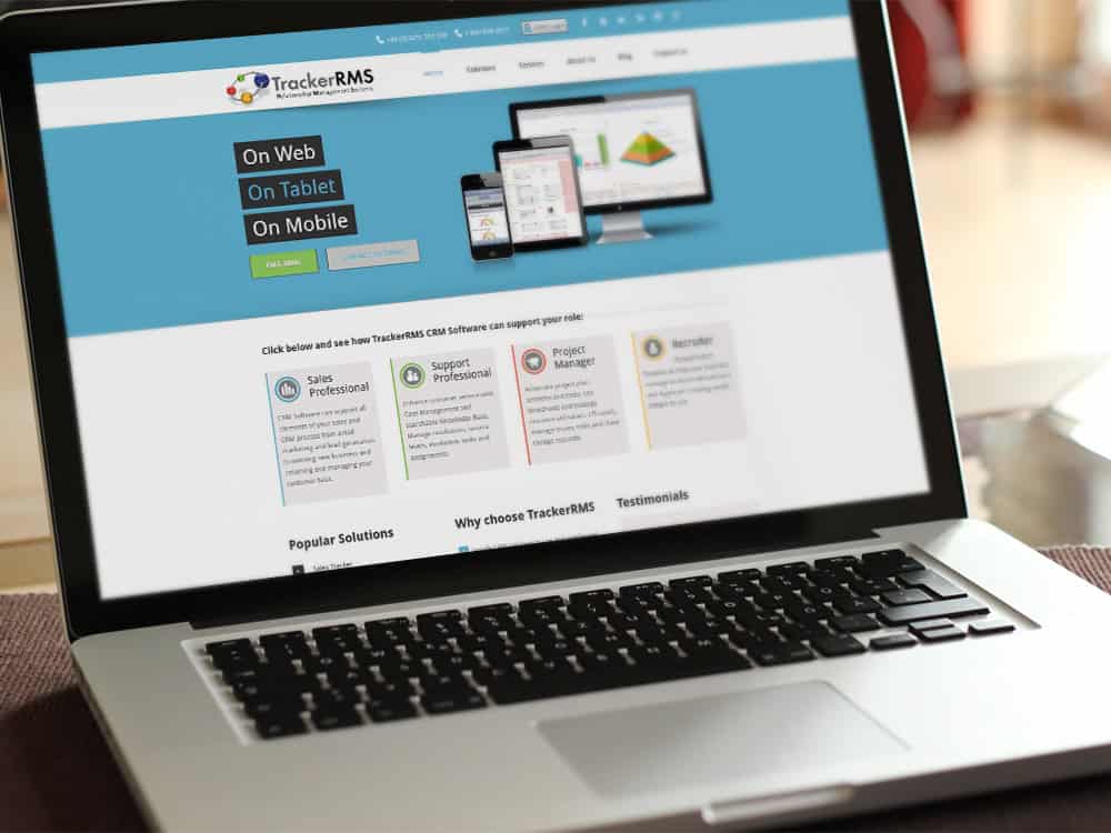 A large bold slider and individually coloured solutions all help to get their point across quickly on their new CRM Website.
